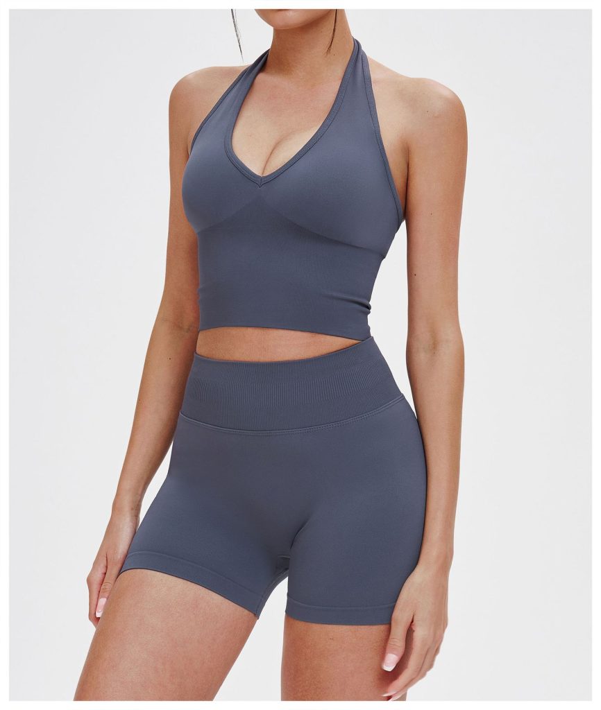 Charcoal Grey Halter Neck Sports Top – Ribbed Cropped Yoga Tank
